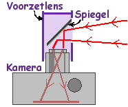 eenvoudig: een spiegeltje is onder 45 graden links of rechts voor de lens